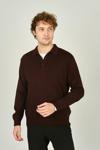 Bordo Yarım Balıkçı Yaka Jakarlı Yün Karışımlı Triko Kazak - Image 1