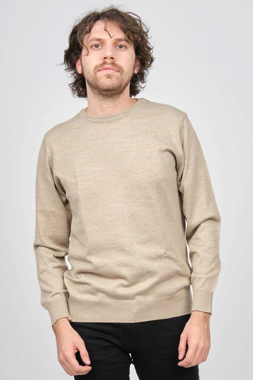 Erkek Yuvarlak Yaka Yün Kazak 6090005 Bej