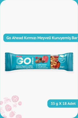 Ülker GO AHEAD Kırmızı Meyveli ve Bitter Çikolatalı Kuruyemiş Bar - 35 gram - 18 Adet