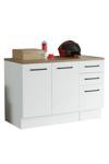 T Designo Atlantikçam Tezgahlı Prag Mutfak Alt Modül 3 Çekmeceli -2 Kapaklı-120 Cm Beyaz-tezgah Dahil