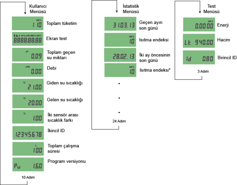 Ölçülen debi ve sıcaklıklara göre ısı miktarın hesaplanır.