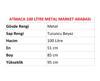 75 Lt, 100 Lt, 120 Lt. seçenekleri ile perakende sektörüne sunulan atmaca metal market arabası, çinko üzeri vernik kaplama yapılarak perakende sektöründe birçok firma tarafından tercih edilmektedir. Atmaca market arabasında yer alan plastik malzeme, Polietilendir. Güçlü yüzey kaplaması ve dayanıklı yapısıyla atmaca market arabaları, süpermarket, hipermarket, şarküteri gibi müşteri sirkülasyonunun hızlı olduğu yerlerde özellikle tercih edilmektedir. Alışılmışın aksine, galvaniz yerine çinko vernik kaplama kullanılan atmaca market arabası, dış hava koşullarına karşı çok daha dayanıklı.