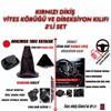 Sonikon line Audi A8 Long 2010-2017 Uyumlu Siyah Deri Kırmızı Dikiş Vites Körüğü ve Direksiyon Kılıfı 2'li Set