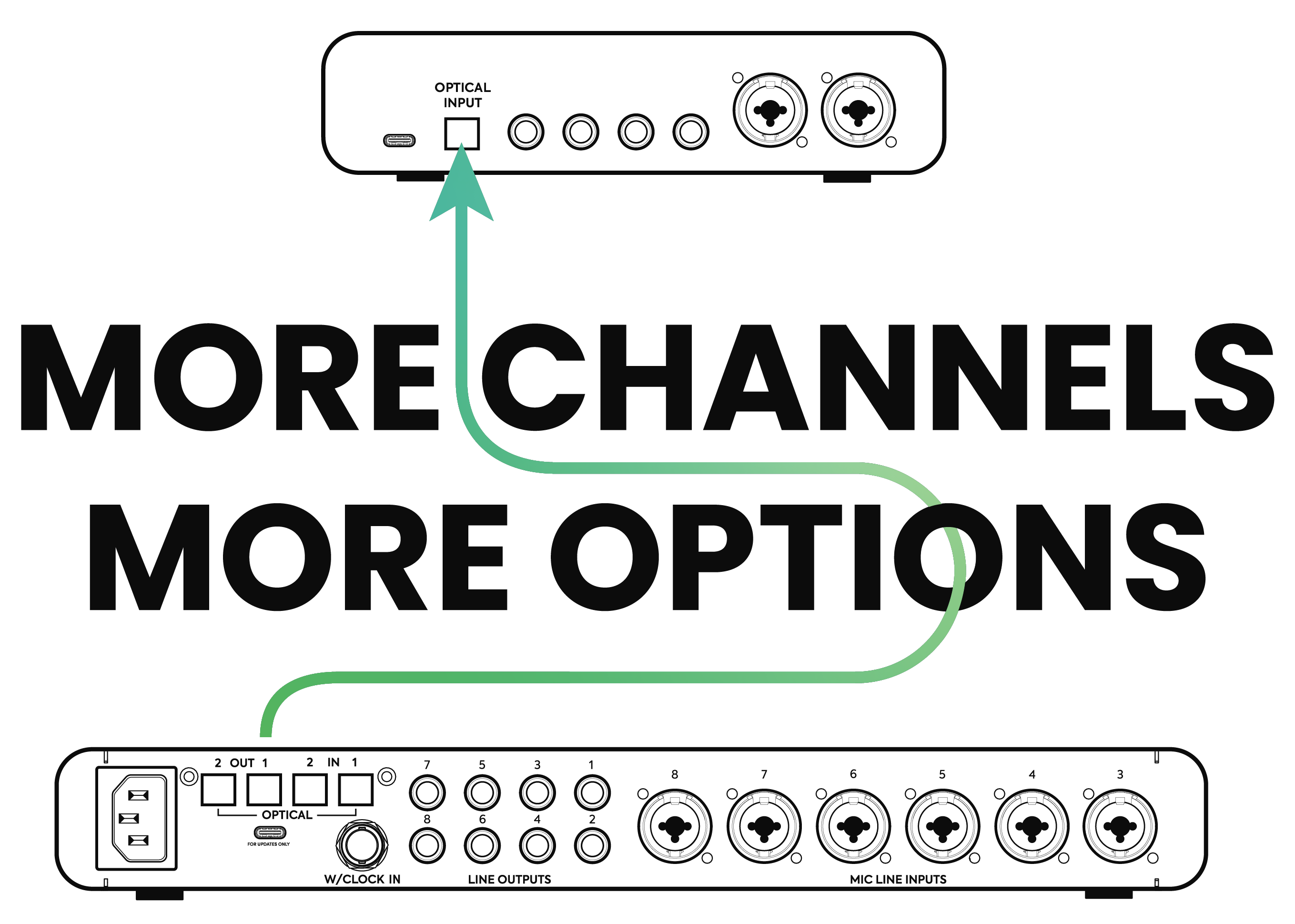 Daha büyük oturumlar daha fazla kanal gerektirir ve mevcut ses arayüzünüzü ADAT aracılığıyla genişletmek, stüdyonuzu büyütmek için en uygun maliyetli çözüm olabilir. EVO SP8, 8 mikrofon/line girişi, 8 line çıkışı ve 2 x ADAT bağlantısı sunarak, davul kaydı veya tam bir bant çalma gibi çok mikrofonlu oturumların üstesinden kolayca gelmeniz için size yeterli Giriş/Çıkış gücü sağlar.
