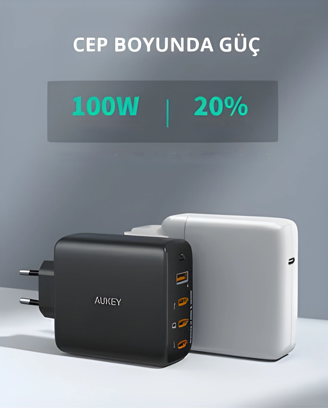 Güçlü ve Çok Yönlü Şarj Deneyimi AUKEY PA-B7S 4-Port 100W PD GaN Teknolojili Adaptör, güçlü şarj kapasitesi ve çoklu bağlantı seçenekleriyle teknoloji severlerin şarj ihtiyaçlarını karşılıyor. 100W Power Delivery (PD) desteği, dizüstü bilgisayarlardan akıllı telefonlara kadar yüksek güç gerektiren cihazları bile hızlı ve güvenli bir şekilde şarj etmenizi sağlar. GaN teknolojisi, cihazın ısınmasını minimuma indirirken daha kompakt bir tasarım sunar ve enerji verimliliğini artırır. Bu şarj cihazı, 3 Type-C ve 1 USB bağlantı noktası ile aynı anda dört cihazı birden şarj edebilme imkanı tanır. Taşınabilir ve hafif yapısı sayesinde seyahatlerde veya yoğun iş günlerinde yanınızda rahatça taşıyabilirsiniz. AUKEY'nin gelişmiş çoklu koruma sistemi, aşırı akım, kısa devre ve aşırı ısınmaya karşı tam koruma sağlar. AUKEY PA-B7S, güçlü, güvenli ve çok yönlü şarj çözümleri sunmak için tasarlanmıştır!