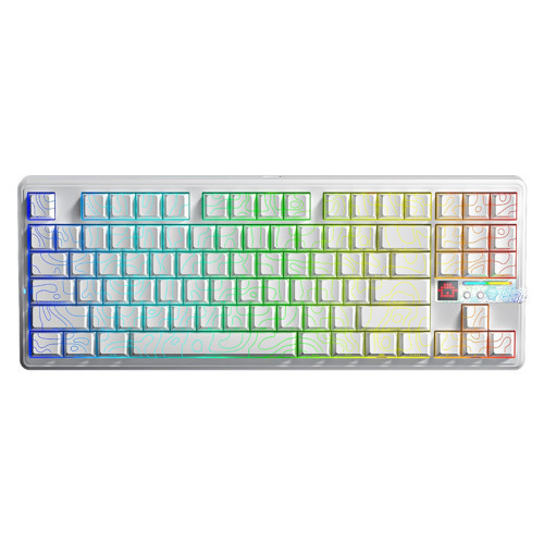 AULA F87 PRO V2, görsellik açısından da güçlü bir donanıma sahiptir. Tuş başına RGB aydınlatma sayesinde klavyenin ışık efektleri tamamen kişiselleştirilebilir. Klavyenin yan kısmında yer alan LED şeritler masaüstü kurulumuna modern bir görünüm kazandırır. Bunun yanında klavyede bulunan dot-matrix ekran sayesinde kullanıcılar çeşitli görsel göstergeleri ve özelleştirilmiş bilgileri görüntüleyebilir.