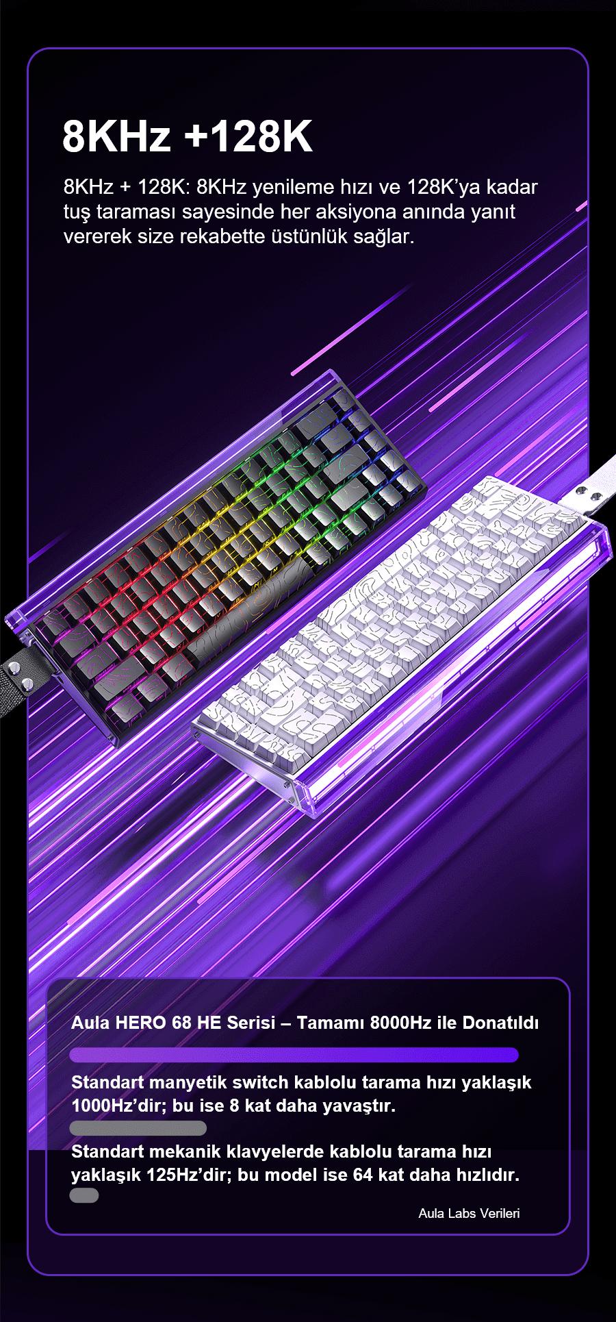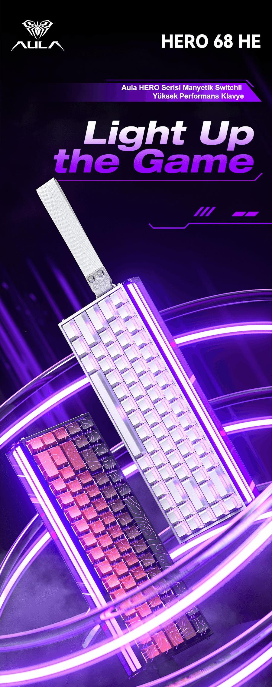 - 1 x Aula Hero68 He Manyetik Klavye Rapid Trigger Meteor Switch 8000Hz RGB Neon TKL Hot Swap Oyuncu Klavyesi Beyaz