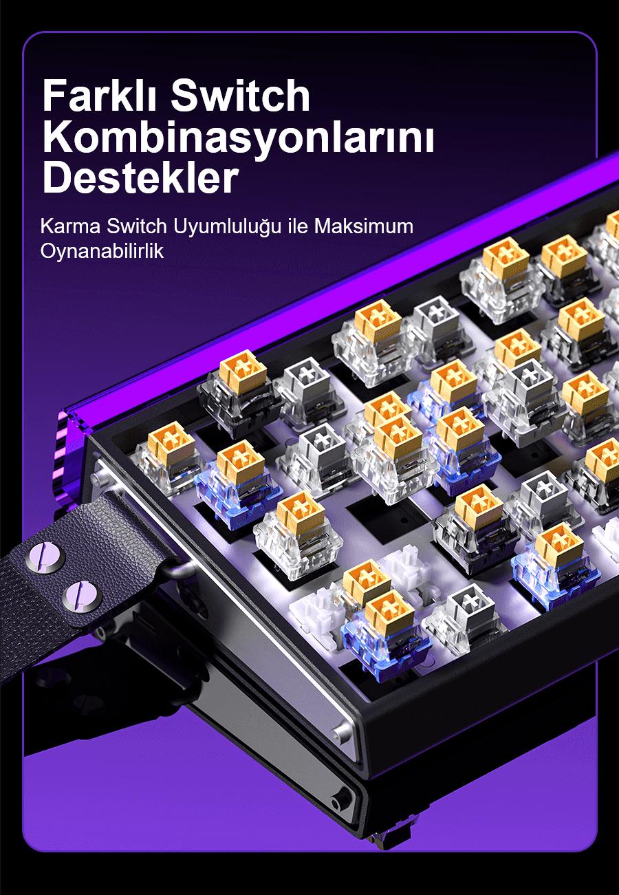 - Fonksiyonlar: RGB panel aydınlatma, Hot Swap, Makro Program Desteği, SOCD, Rapid Trigger, MPT, MT, DKS, TGL