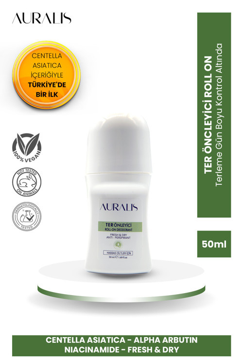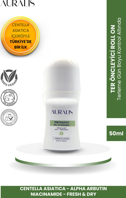 | Günlük kişisel bakım rutini için geliştirilen Auralis Beyazlatıcı Etkili Ter Önleyici Roll-On Antiperspirant, terleme ve kötü koku oluşumuna karşı koruma sağlamaya yardımcı olurken koltuk altı bölgesinin daha bakımlı ve pürüzsüz bir görünüm kazanmasını destekler. Günlük kullanıma uygun formülü ile ferah bir kullanım sunar. Unisex yapısı sayesinde hem kadınlar hem de erkekler tarafından rahatlıkla tercih edilebilir. Alüminyum içermeyen formülü, cilde nazik bir kullanım sunmayı hedefler. Roll-on başlığı sayesinde kolay ve kontrollü uygulama imkanı sağlar. Öne Çıkan Özellikler: Terleme ve kötü koku oluşumuna karşı koruma sağlamaya yardımcı olur Koltuk altı bölgesinde daha eşit ve bakımlı bir görünüm elde edilmesini destekler Unisex kullanıma uygundur Günlük kullanıma uygundur Alüminyum içermez Roll-on formu ile pratik ve kolay uygulama sağlar Ferah ve konforlu kullanım sunar Kullanım Şekli: Temiz ve kuru koltuk altına günde 1–2 kez uygulayınız. Günlük kişisel bakım rutininizin bir parçası olarak düzenli kullanıma uygundur. Ambalaj ve İçerik Bilgisi: 50 ml ürün hacmi Roll-on ambalaj Çantada taşımaya uygun kompakt tasarım Kullanıcı Grubu: Yetişkin Kadın ve erkek (Unisex) |