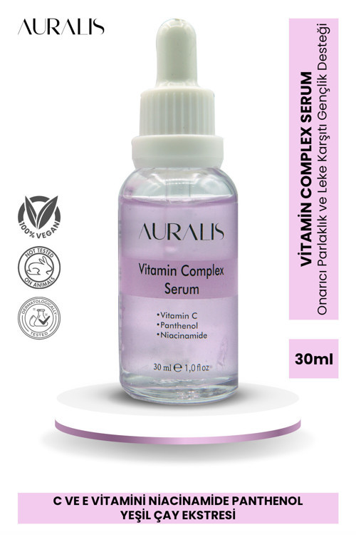 | Cilt bakım rutininizi desteklemek için özel olarak formüle edilen Auralis Vitamin Complex Cilt Bakım Serumu, zengin vitamin içeriği ile cildin daha aydınlık, canlı ve dengeli bir görünüm kazanmasına yardımcı olur. Günlük kullanıma uygun yapısı sayesinde cilt bakım rutininize kolayca dahil edilebilir. C ve E vitaminleri, niacinamide, panthenol ve yeşil çay ekstresi içeren formülü; cildin ihtiyaç duyduğu bakımı desteklerken cilt tonunun eşitlenmesine ve daha parlak bir görünüm elde edilmesine katkı sağlar. Hafif dokusu sayesinde cilt tarafından kolayca emilir ve yağlı bir his bırakmaz. Öne Çıkan Özellikler: C ve E vitaminleri ile cildin daha canlı ve aydınlık görünmesine yardımcı olur Niacinamide içeriği ile cilt tonu eşitliğini destekler Panthenol sayesinde cildin nem dengesinin korunmasına katkı sağlar Yeşil çay ekstresi ile cilt bakımını tamamlar Donuk ve mat görünümün azalmasına yardımcı olur Düzenli kullanımda daha pürüzsüz bir cilt görünümünü destekler Hafif ve hızlı emilen yapıya sahiptir Günlük cilt bakım rutinine uygundur Ambalaj ve İçerik Bilgisi: 30 ml ürün hacmi Ampul formu sayesinde pratik ve kontrollü kullanım Kutulu ambalaj ile hijyenik saklama imkanı Çantada taşımaya uygun tasarım Kullanım Şekli: Temiz ve kuru cilde, yeterli miktarda ürünü dairesel hareketlerle masaj yaparak uygulayınız. İhtiyaç duyulan bölgelere özel olarak kullanılabilir. Günlük cilt bakım rutininin bir parçası olarak sabah ve/veya akşam uygulanabilir. |
