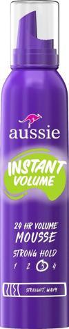 Aussie Instant Volume Hacimlendirici Saç Köpüğü, cansız ve sönük saçlara anında hacim kazandırmak için özel olarak formüle edilmiştir. Tüm saç tiplerine uygun olan bu hafif yapılı köpük, saçlarda dolgunluk ve esneklik hissi yaratırken aynı zamanda 24 saate kadar etkili bir tutuş sağlar.