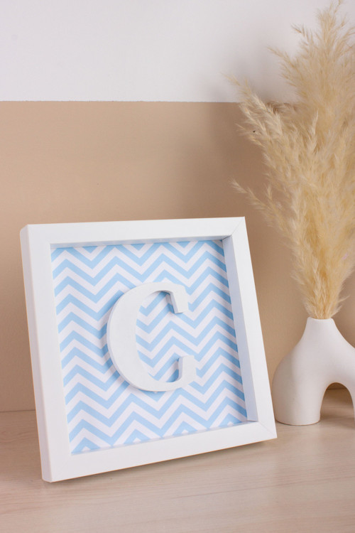 Sevdiklerinizin isimlerinin baş harfleriyle özelleştirilen bu çerçeve, bebek odalarına şıklık katar.
