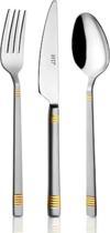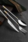 Gold detaylı modern tasarımı, sofralarınıza estetik bir dokunuş katarken, yüksek kaliteli malzemesi uzun ömürlü ve dayanıklı kullanım sağlar. Ergonomik sap tasarımı, çatal, bıçak ve kaşıkların elde rahat ve güvenli bir şekilde kullanılmasına olanak tanır.