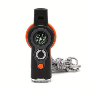 Kamp Düdüğü 7 'si 1 Arada El feneri Termometre Pusula Büyüteç Depolama Bölmeli Acil durum Düdüğü - Image 1