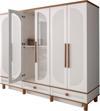 Özel bohem serisi takım içeriğinde ; gardırop, aynalı şifonyer, komodinx2 ve başlık bulunmaktadır. ; fotoğrafta görülen aytaşı rengidir. ; gövdeler 1. Sınıf %100 mdf'den üretilmiştir. ;takım içeriği ve ölçüleri ; gardırop : Genişlik : 230 cm - Derinlik : 58 cm - Yükseklik 215 cm ; şifonyer : Genişlik : 120 cm - Derinlik : 41.5 cm - Yükseklik 85 cm ; komodin : Genişlik : 55 cm - Derinlik : 41.5 cm - Yükseklik 42 cm ; başlık : Genişlik : 160 cm - Derinlik : yükseklik 120 cm ;