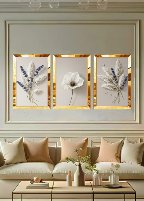 Pleksi Çerçeveli Lavanta Pamuk Tablo 3lü Toplam Kapladığı Alan 120x60 cm, 90x45 cm ve 60x30 cm dir.