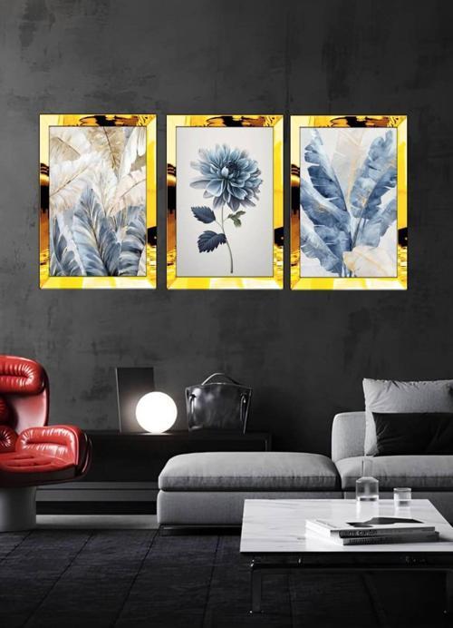 Pleksi Çerçeveli Mavi Tüy Çiçek Tablo 3lü Tablo 3lü özellikleri