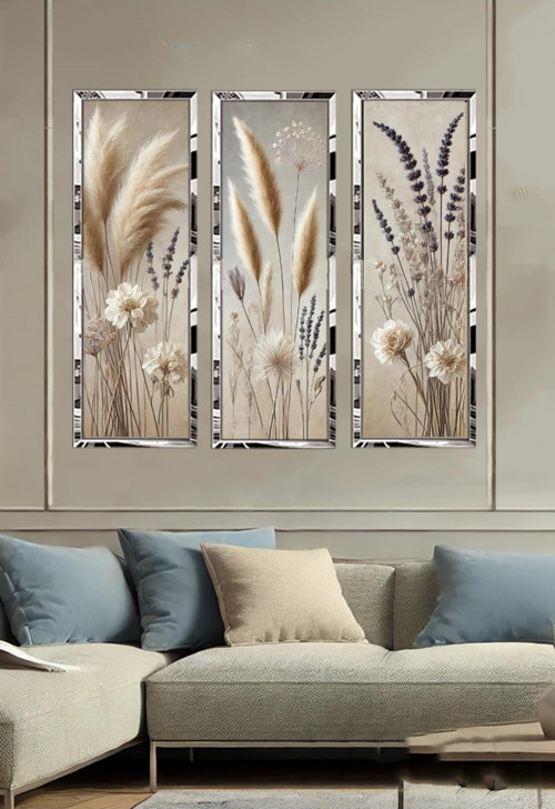 AVM19 markasının şıklığı ve zarafeti bir araya getiren pleksi çerçeveli pamuk uzun tablo seti, dekorasyonunuza modern bir dokunuş katıyor.