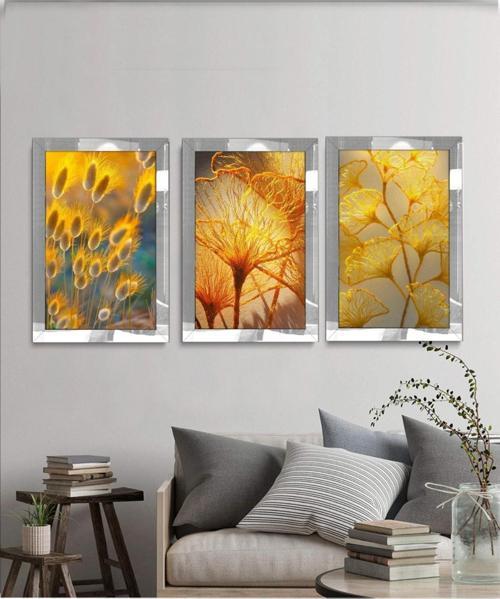 AVM19 Pleksi Çerçeveli Sarı Çiçek Tablo 3Lü