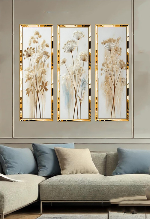 Avm19 Pleksi Çerçeveli Sarı Pamuk Tablo 3'Lü
