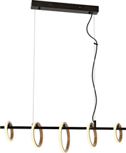 Dekoratif filament veya warm‑white LED ampullerle birlikte kullanıldığında avizenin sarı/siyah kaplama detayları daha fazla öne çıkar.