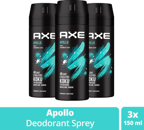 Erkek Sprey Deodorant Apollo 48 Saat Etkileyici Koku Vücut Spreyi 150 ml X3 Adet