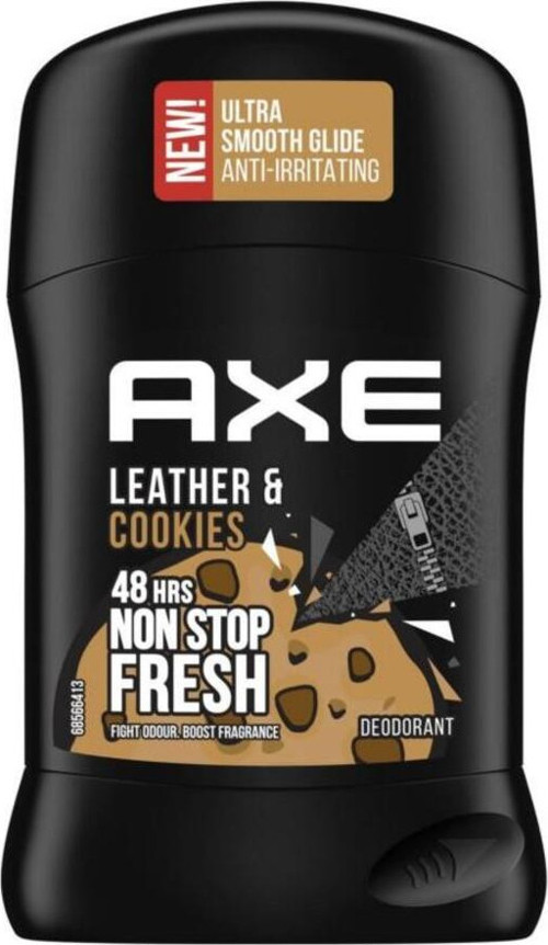 Yeni Axe Deodorant Stick'i her kullandığında ferahlığı hisset!Kakule ve mandalina notalarıyla zenginleştirilen Axe Leather & Cookies ile benzersiz bir koku deneyimi seni bekliyor.Koltuk altında ultra konforlu uygulama sağlar. İritasyon karşıtı formülü ile tahrişe yol açmaz.Daha yoğun koku için Axe Leather & Cookies Deodorant & Bodyspray ile birlikte kullanmaya ne dersin?