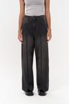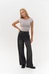 Yüksek Bel, geniş kesim jean. Bel kemer ve düğme detaylı, önü fermuarlı ve metal düğmeli, beş cepli, soluk yıkama efektli özel tasarım.
