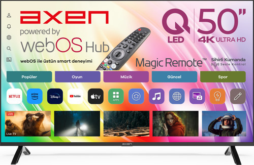 Axen 50" 4K UHD QLED TV: HDR ve Dolby Audio ile Efsane Görüntü ve Ses Deneyimi