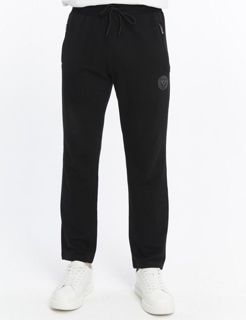 - Rahatlık ve şıklığı bir arada sunan siyah erkek eşofman altı, günlük kullanım için idealdir.; - %50 pamuk, %40 polyester ve %10 elastan karışımı materyali ile konforlu bir deneyim sağlar.; - Regular silueti sayesinde her vücut tipine uyum sağlayarak rahat bir kullanım sunar.; - Tüm sezonlarda tercih edebileceğiniz bu eşofman altı, mevsim geçişlerinde de stilinizi korumanızı sağlar.; - Fermuar detayı pratik kullanım imkanı tanırken, fleto cep tasarımı küçük eşyalarınız için kolay erişim olanağı sunar.; - Yüksek bel kesimiyle modern ve şık bir görünüm kazandırırken, uzun paça boyu bacakları olduğundan daha uzun gösterir.; - Beli lastikli yapısı sayesinde gün boyu konforlu bir oturuşa sahip olursunuz; hareket özgürlüğünüzü kısıtlamaz.; - Menswear koleksiyonuna ait olan bu ürün, yetişkin erkekler için özel olarak tasarlanmıştır.; - 30°C'de makinede yıkama talimatına uygun şekilde temizlenebilir; böylece uzun süre ilk günkü gibi kalmasını sağlar.