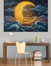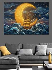 Tablomega Ay Işığında Yelkenli Gemi Dekoratif Kanvas - Mdf Ahşap Tablo
