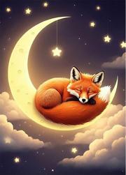 Ay Ve Tilki Çizimi Modern Mdf Tablo 25cmX 35cm