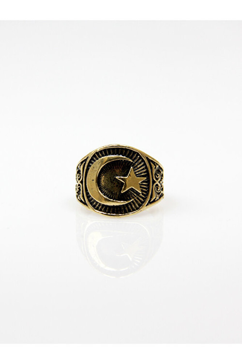 Ay Yıldız Modelli Antik Erkek Ayarlanabilir Yüzük
