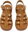 Ayakkabı Fuarı Elit Sylviana Kadın Hakiki Süet Deri Ortopedik Düz Sandalet Taba
