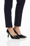 İnce ve parlak topuk detayıyla dikkat çekicidir.