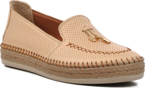 394162 Bej Hakiki Deri Kadın Loafer Ayakkabı