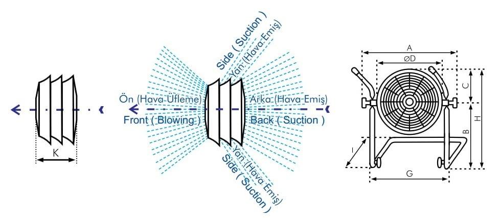 - Sağa sola dönmesine gerek kalmadan arka ve yanlardan açılı olarak havayı alır ve aynı şekilde ortama yayar