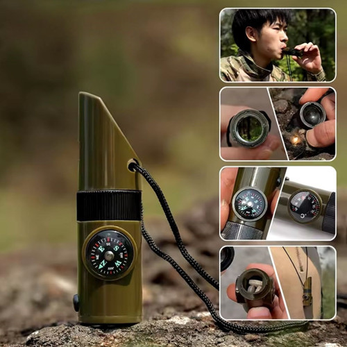 7'si 1 Arada Acil Durum Düdüğü ile güvenli ve hazırlıklı olun! Kamp, doğa yürüyüşleri veya acil durumlarda ihtiyaç duyabileceğiniz 7 işlevi bir arada sunan bu çok amaçlı düdük, kompakt tasarımı ile yanınızda taşıyabileceğiniz bir hayat kurtarıcıdır.