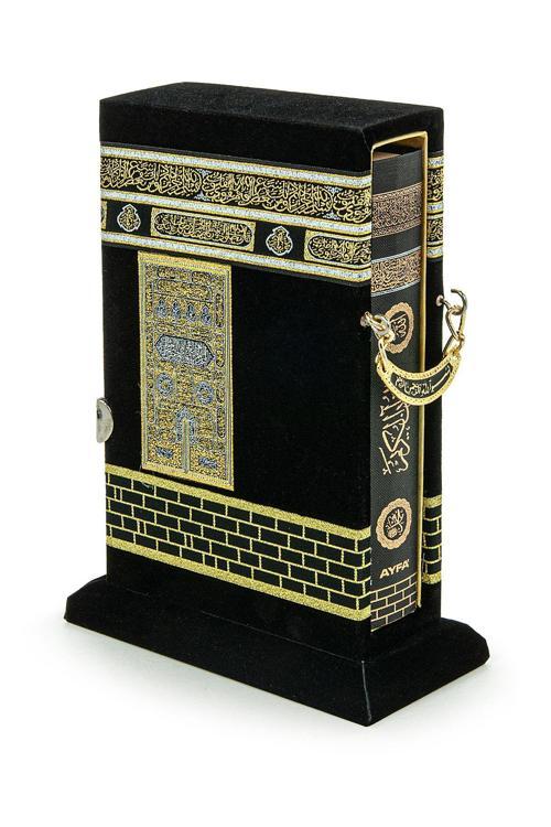 Kabe Desenli Kutulu Kur'an-ı Kerim (Hafız Boy) Evinize ve iş yerinize kattığı görsel güzelliği ile eşşiz bir maneviyat vermektedir. Özel Kadife Kabe Desenli Koruma Kılıflı Kutulu Olarak Dizayn Edilmiştir.