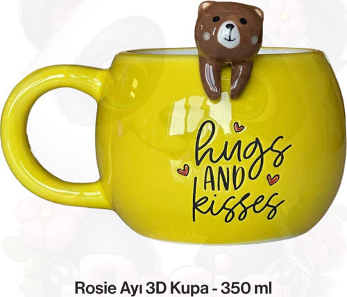 ROSIE Ayı Figürlü Hugs And Kisses Seramik Sarı Kupa Bardak 350 ml