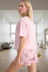 Evde rahat ve şık görünmek isteyenler için ideal olan bu pijama takımı, %100 pamuklu yumuşak yapısıyla üstün konfor sunuyor. Ayıcık desenli tasarımıyla eğlenceli ve sevimli bir tarz yakalayacaksınız. Kısa kollu tişörtü ve şortu ile yaz aylarında serin kalmanıza yardımcı olur. Regular kalıp, rahat bir uyum sağlar. Normal bel şortu ve boru paçası ile şık ve modern bir görünüm elde edebilirsiniz. Uyku bandı ile uykunuzu daha keyifli hale getirecektir.