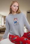 Soğuk kış gecelerinde kendinizi sıcak ve rahat hissetmenizi sağlayacak, şık ve eğlenceli bir pijama takımıyla tanışın! Bu 2'li pijama takımı, yumuşak ve nefes alan polyester karışımlı kumaştan üretilmiştir. Gri melenj üst ve kırmızı desenli alt ile uyumlu ve göz alıcı bir kombin oluşturur. Üzerindeki sevimli ayıcık figürleri ve 'Sweet Dreams' yazısıyla, tatlı rüyalar vaat eder. Regular kalıp sayesinde gün boyu rahat hissedeceksiniz. Uzun kolları ve boru paçaları ile soğuktan korunmanız sağlanır.