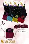Aymelek Kadın Çorap (4 Çift) Doğal Kıvrık Termal Etkili Desenli Bot Çorabı