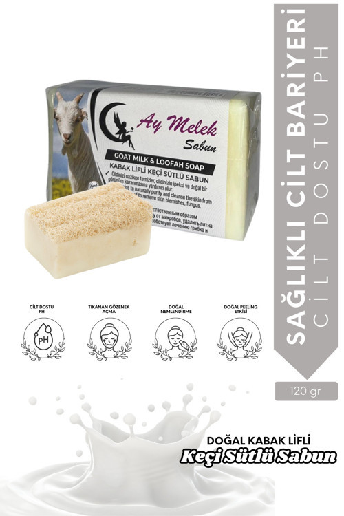 Keçi Sütü Özlü Doğal Kabak Lifli Güzellik Sabunu Cilt Kırışıklık Önleyici Etkili %100 doğal kabak lifli keçi sütlü sabun keçi sütü sabunu zengin protein içeriğiyle cildi besler ve parlaklık verir..