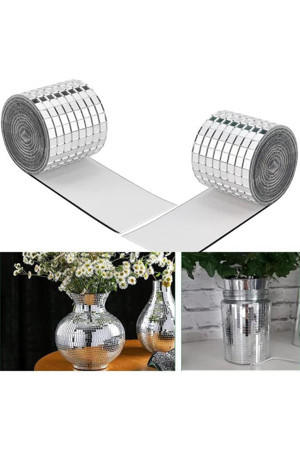 2 Rulo Gümüş Renk Aynalı Mozaik Taşlı Dekor Bant Yapışkanlı Kare Cam Ayna Taş Parti Süsleme Bandı