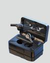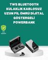 Taşınabilir şarj kutusu, 3500 mAh kapasitesi ile kulaklıkları defalarca şarj edebilir ve acil durumlarda telefon gibi cihazlara da enerji sağlayabilir.