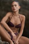Boyundan geçmeli, bağcıkla ayarlanabilir bikini üstü. İç astarlı. Metal halka detaylı.