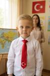 Cumhuriyet Bayramı, 23 Nisan, 29 Ekim ve diğer milli bayram kutlamaları için özel olarak tasarlanmış kırmızı saten çocuk kravatıdır.