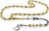 Tesbihane 925 Ayar Gümüş Kral Zincir Püsküllü Kapsül Kesim Beyaz-Sarı Renk Patinli Damla Kehribar Tesbih