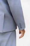 Göğüste biyeli ve kalçada kapaklı cepleri bulunur. İç cep detaylı. Arkası yırtmaçlı. Önü kruvaze düğmeli.